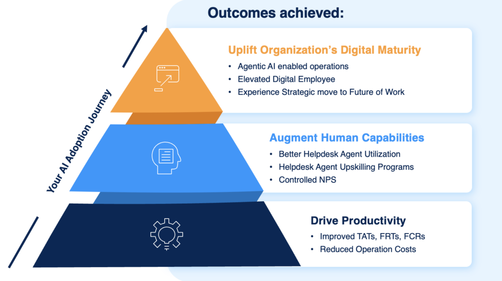 Begin your AI service desk initiative by targeting productivity improvements as the first milestone. Enhancing ticket resolution and operational efficiency should be the immediate focus. As your organization’s maturity grows, shift attention to empowering human agents through advanced service desk triage and agentic AI technologies.